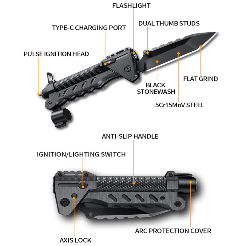 The 4-in-1 Survex Kit is crafted from durable 5Cr15MoV steel, offering reliable sharpness, solid edge retention, and long-lasting performance for everyday outdoor and utility tasks. Designed for practicality and ease of maintenance, it delivers consistent cutting performance across a variety of environments.