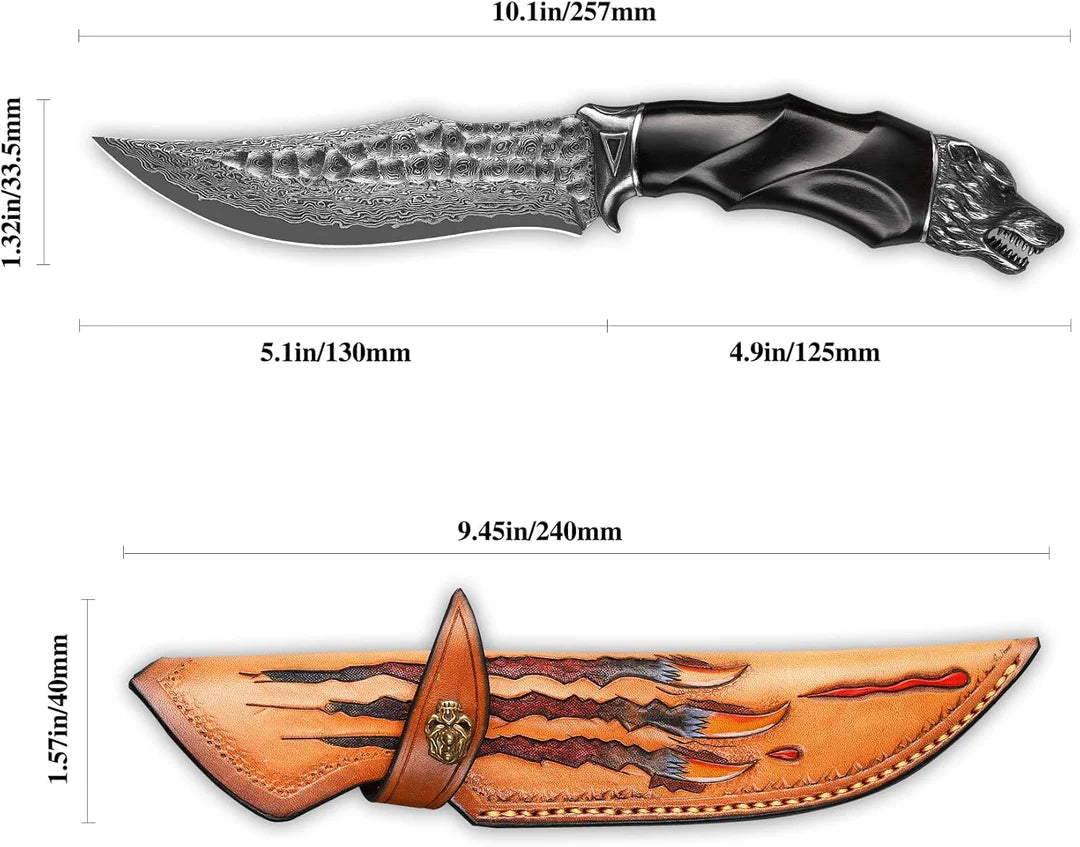 - Handle Material: Metal Stainless Steel + Ebony Wood + Stainless Steel Wolf Head